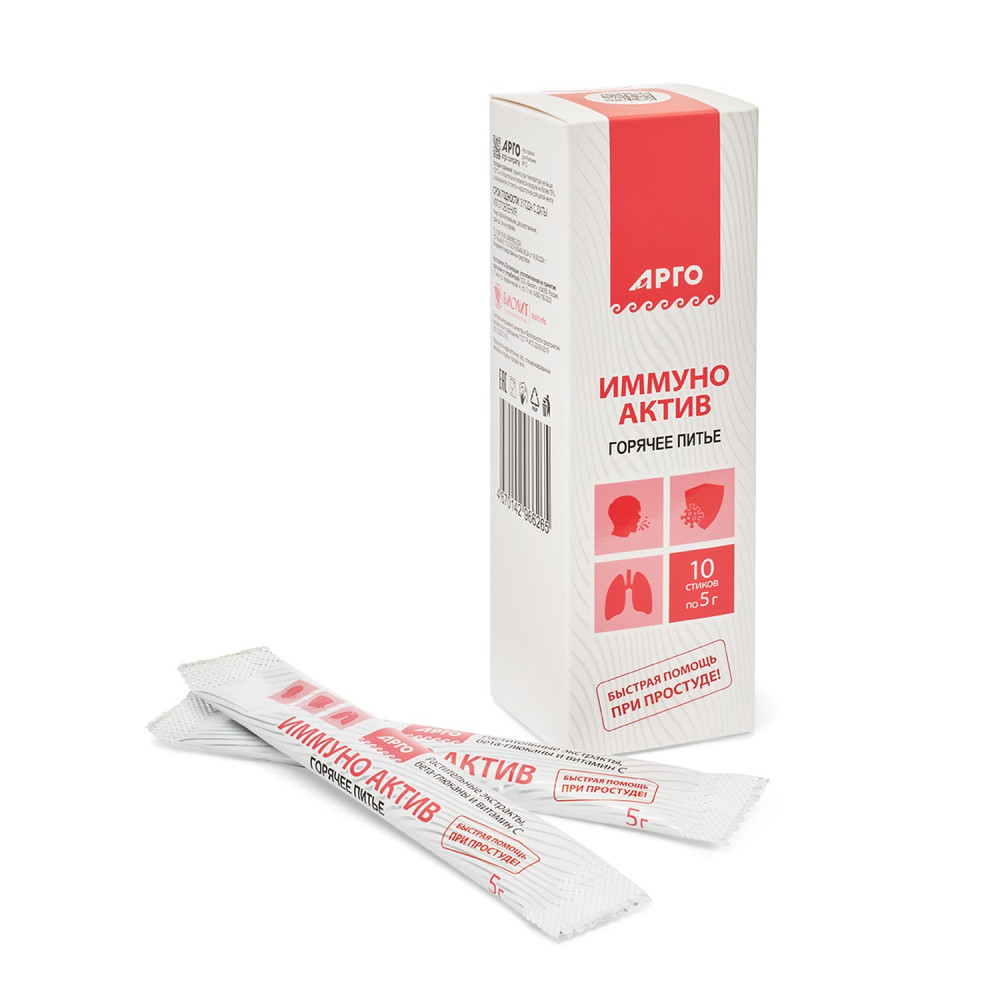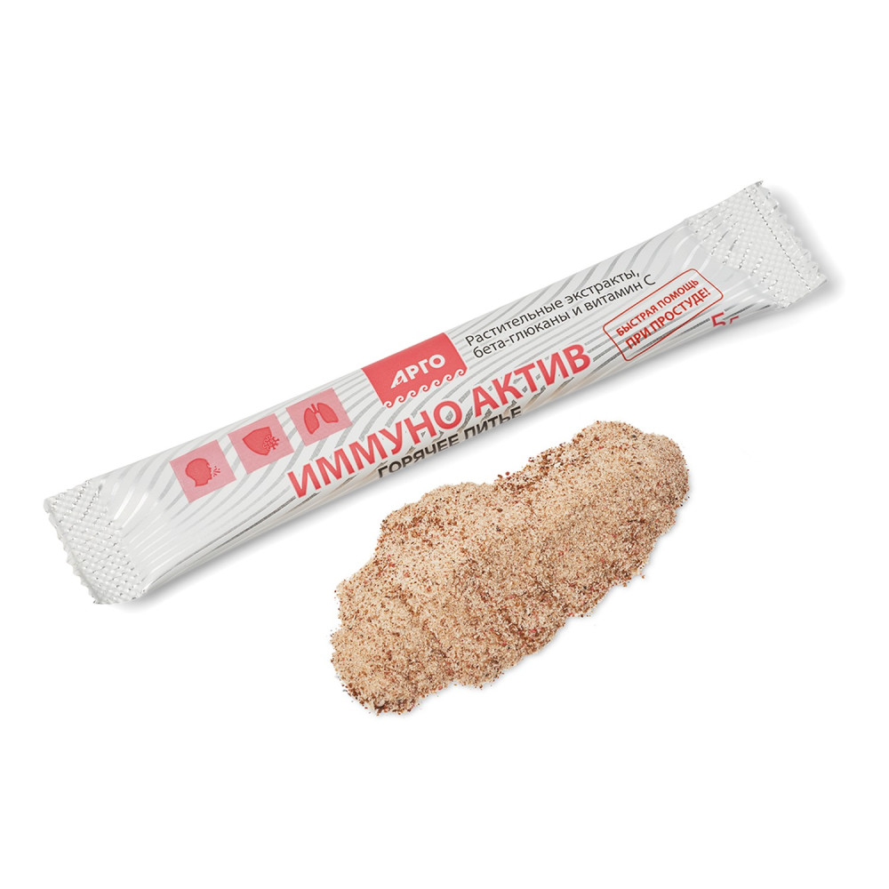 Иммуно Актив Горячее питьё, быстрая помощь при простуде оказывает противовоспалительное, антибактериальное, потогонное, отхаркивающее, а также жаропонижающее действие.