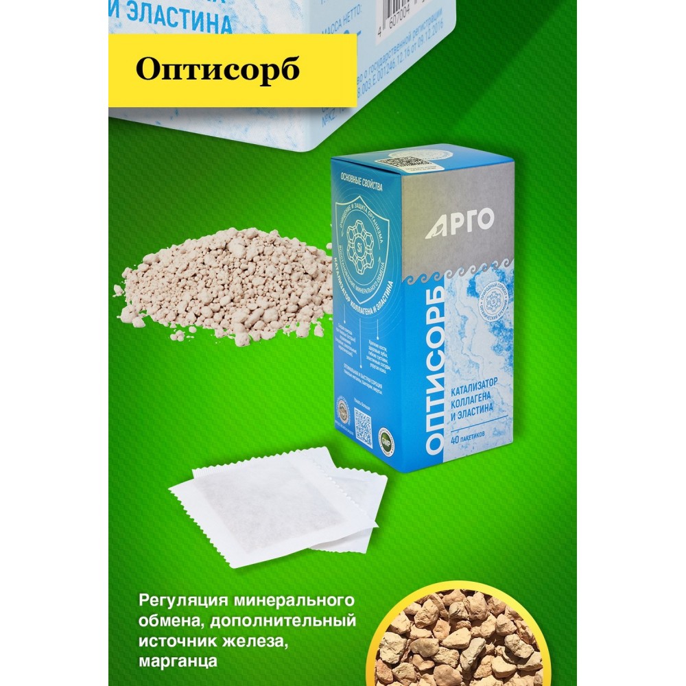 Оптисорб является энтеро и доноросорбентом, способным регулировать минеральный гомеостаз естественным образом – организм может получать только те микро и макроэлементы, в которых испытывает потребность, а отдавать лишь те, которые имеет в избытке и слабо удерживает. Выявлена эффективность использования цеолитов при отравлении карбофосом, тетрахлорметаном, а также радионуклидами, такими как цезий-137, стронций-90. Диатомит природный возник при осаждении кремнистых створок диатомовых водорослей и имеет пресноводное и морское происхождение, обладает большой пористостью, способностью к адсорбции и кислотостойкостью. Кремний необходим для формирования основного вещества кости и хряща и принимает непосредственное участие в процессе минерализации костной ткани. Кремний в качестве структурного компонента входит в состав гликозаминогликогенов и их белковых комплексов, образующих остов соединительной ткани и придающих ей прочность и упругость. Необходим для построения эпителиальных клеток. Действие кремния на процессы остеогенеза осуществляется независимо от витамина D и направлено в первую очередь на синтез коллагенов в основном веществе, на который витамин D не оказывает влияния. Кремний защищает интиму аорты от ее инфильтрации липидами за счет уменьшения проницаемости соединительной ткани. При дефиците кремния происходит полная утрата основным веществом кости регулярной трабекулярной структуры. Происходят патологические изменения хрящевой ткани, обусловленные нарушением синтеза гликозаминогликанов, основного вещества хряща и соединительнотканных волокон.